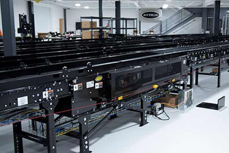 Hytrol’s Sortation conveyors are used to efficiently sort products to other lines. Sortation equipment can use pushers, wheels, or sliding shoes to achieve higher throughput rates in a system.